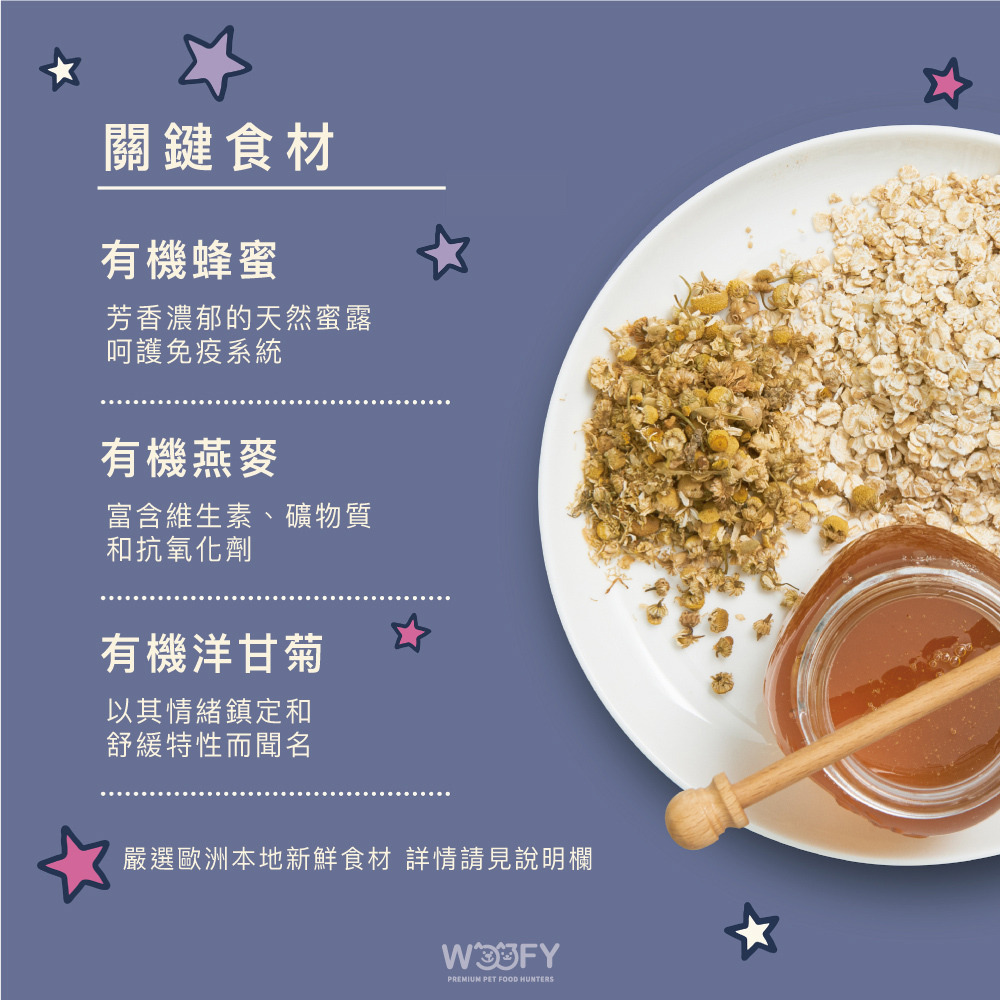 這款餅乾非常適合幫助您的狗狗在睡前放鬆身心,準備好進入甜美夢鄉。