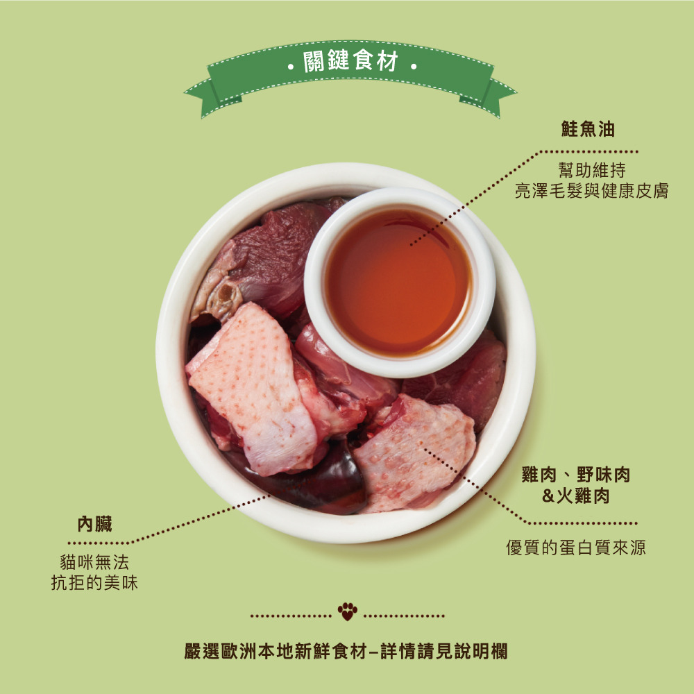 您可能會注意到包裝標籤的資訊顯示方式發生了一些細微的變化。這是為了確保我們的包裝適合全球客戶。請放心,它們仍然是您家貓咪所認識和喜愛的食譜配方。