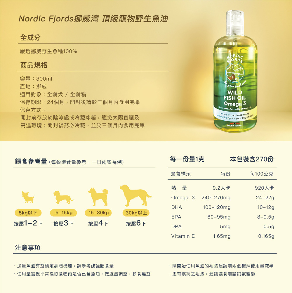 剛開始使用魚油的毛孩建議前兩個禮拜使用量減半。