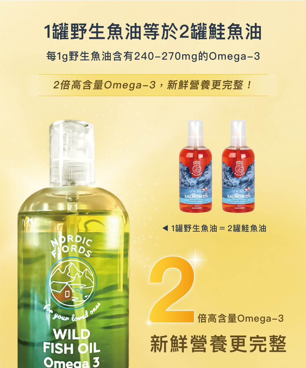 第一:口味不同,野生魚油使用挪威野生鯖魚為主的魚種製成,鮭魚油則為純鮭魚製成;