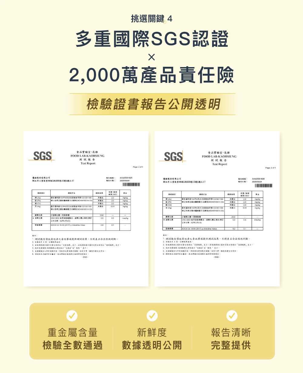 ✅通過 SGS 國際檢驗,投保2,000萬產品責任險