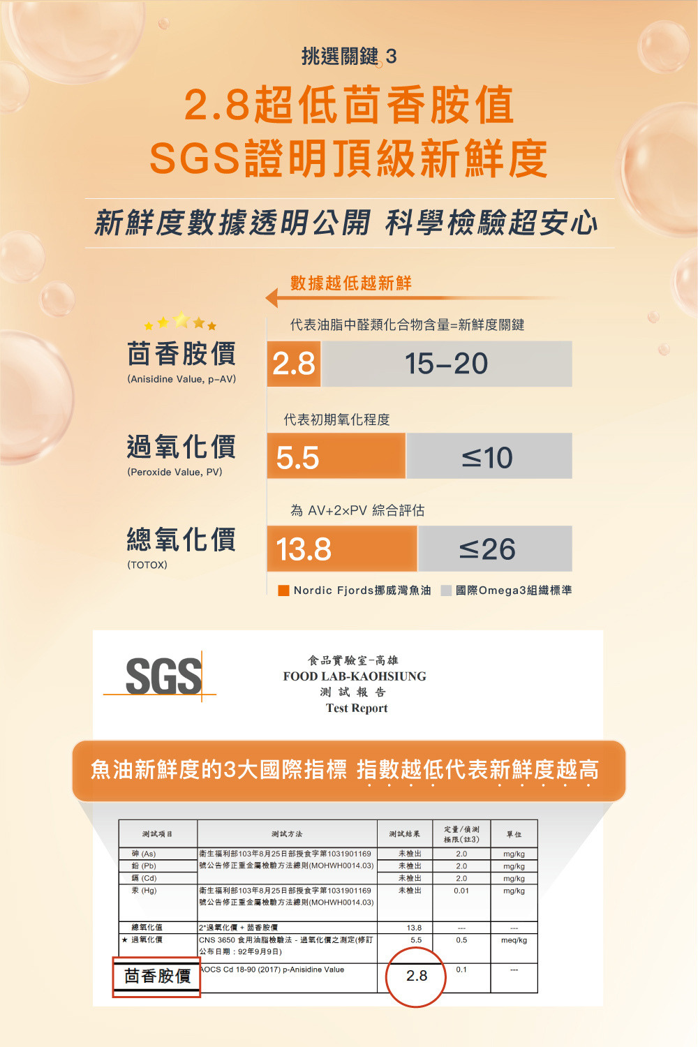 高純度|100%魚油+2.8茴香胺值,純度+鮮度雙重保證