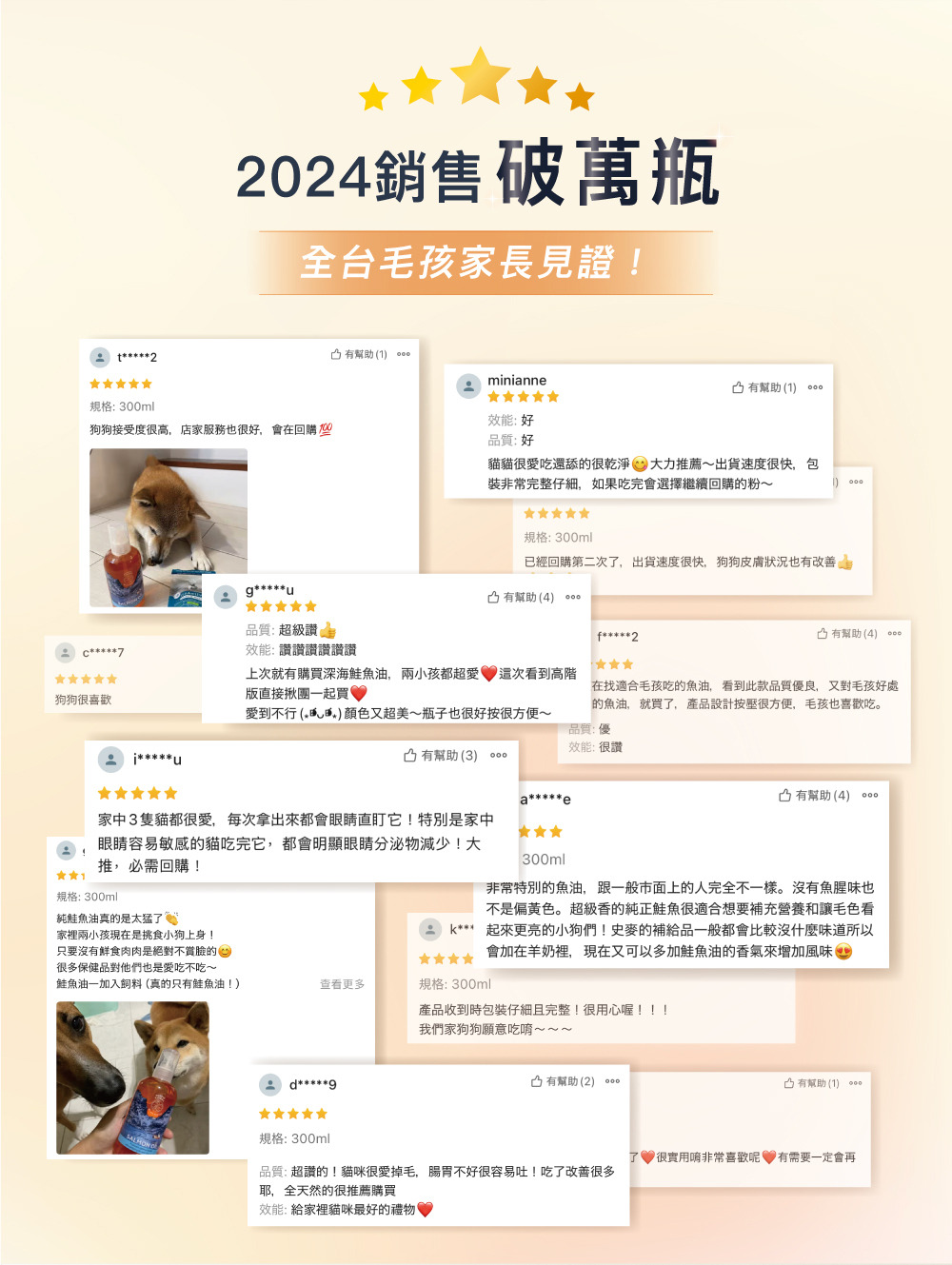 剛開始使用魚油的毛孩建議前兩個禮拜使用量減半。