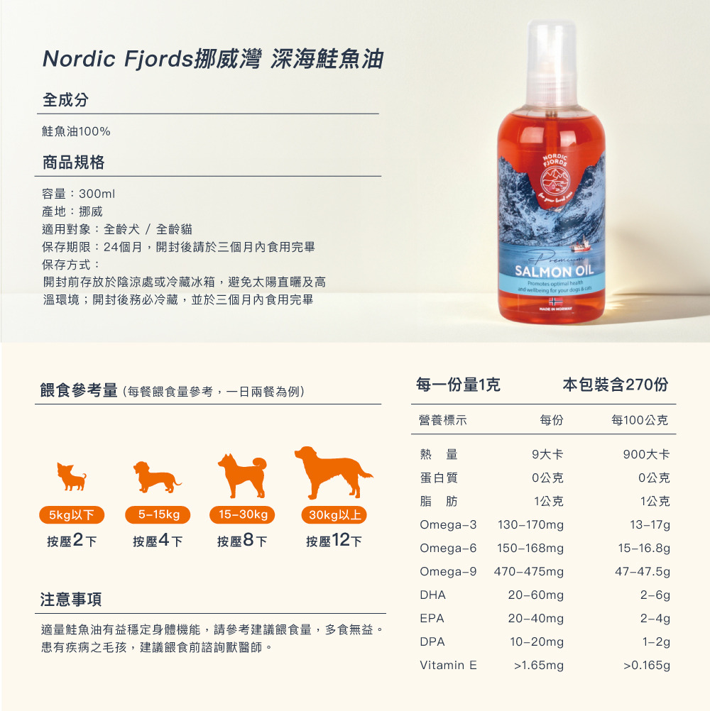 【Nordic Fjords 挪威灣】100%挪威原裝空運進口深海鮭魚油 300ml噴頭裝